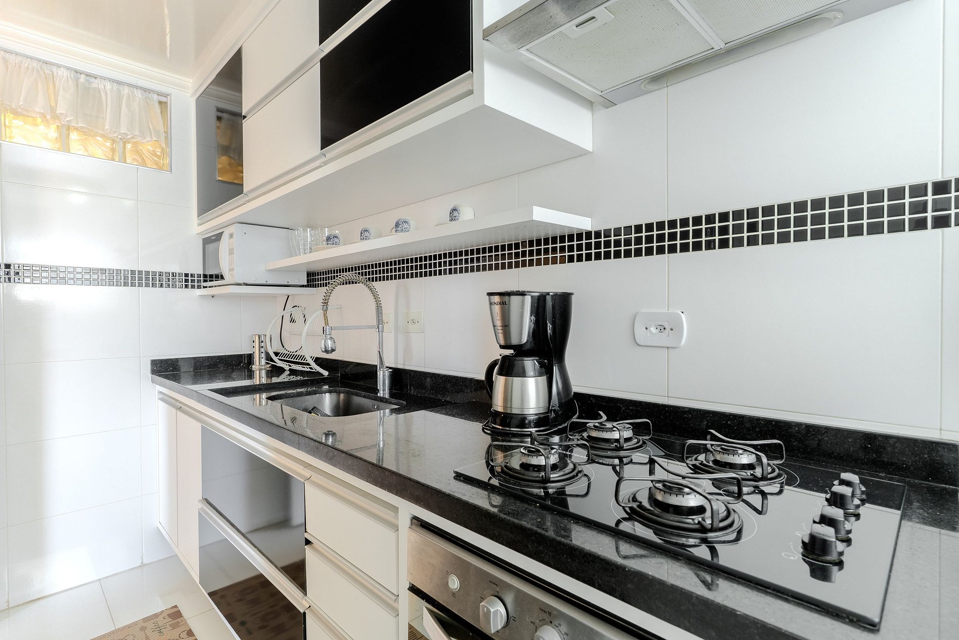 O Apartamento possui chuveiro com aquecedor de passagem, varanda fechada com vidros, TV LED de 40'' LED na sala e TV LED de 32'' no quarto de casal. Ambos os pontos possuem Sky. A cozinha bem equipada possui todos os utensílios para preparo de refeições.