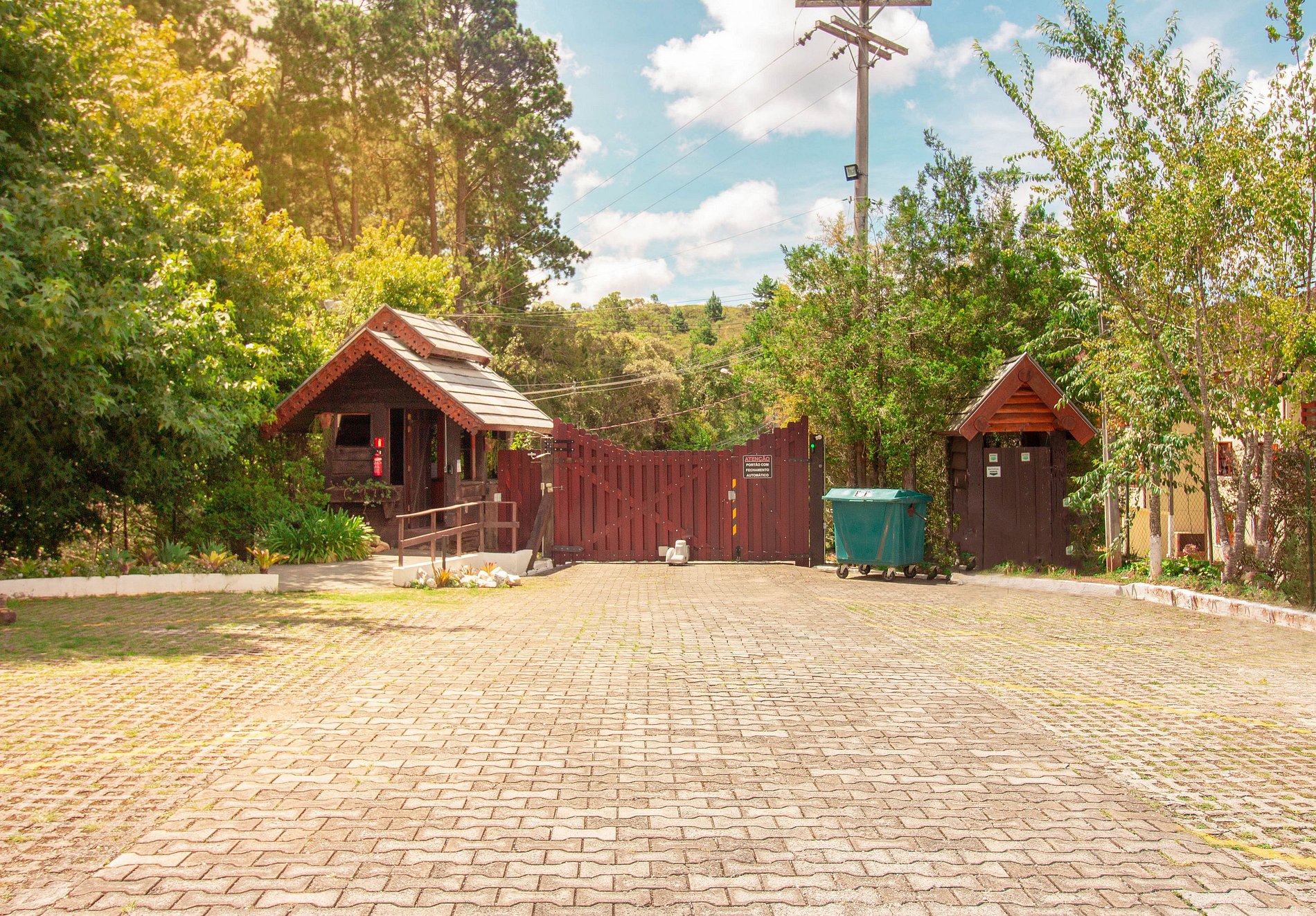 Os hóspedes podem caminhar pelas áreas externas do condomínio como os jardins.